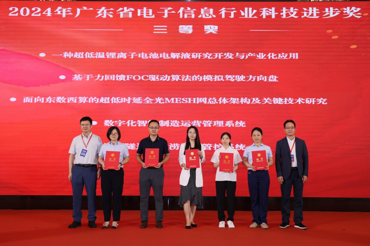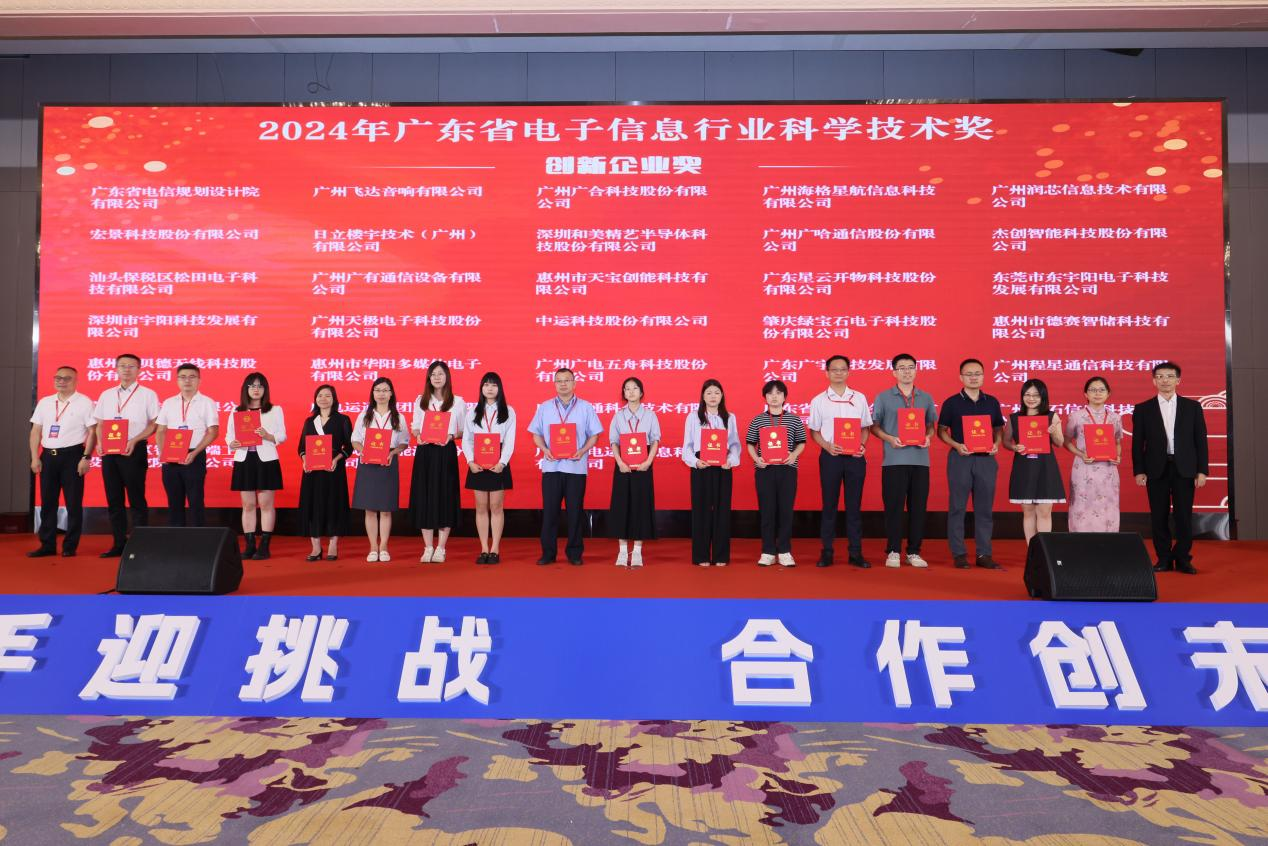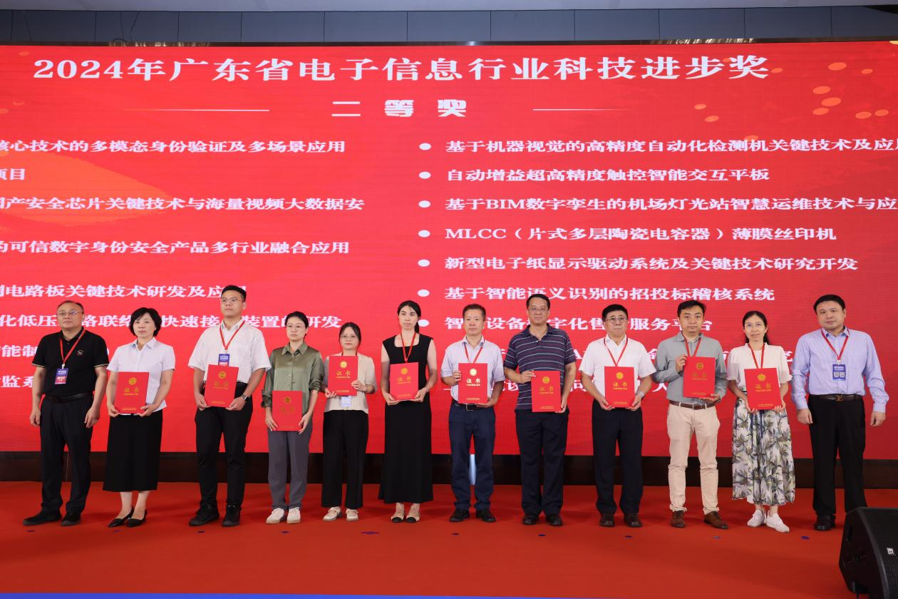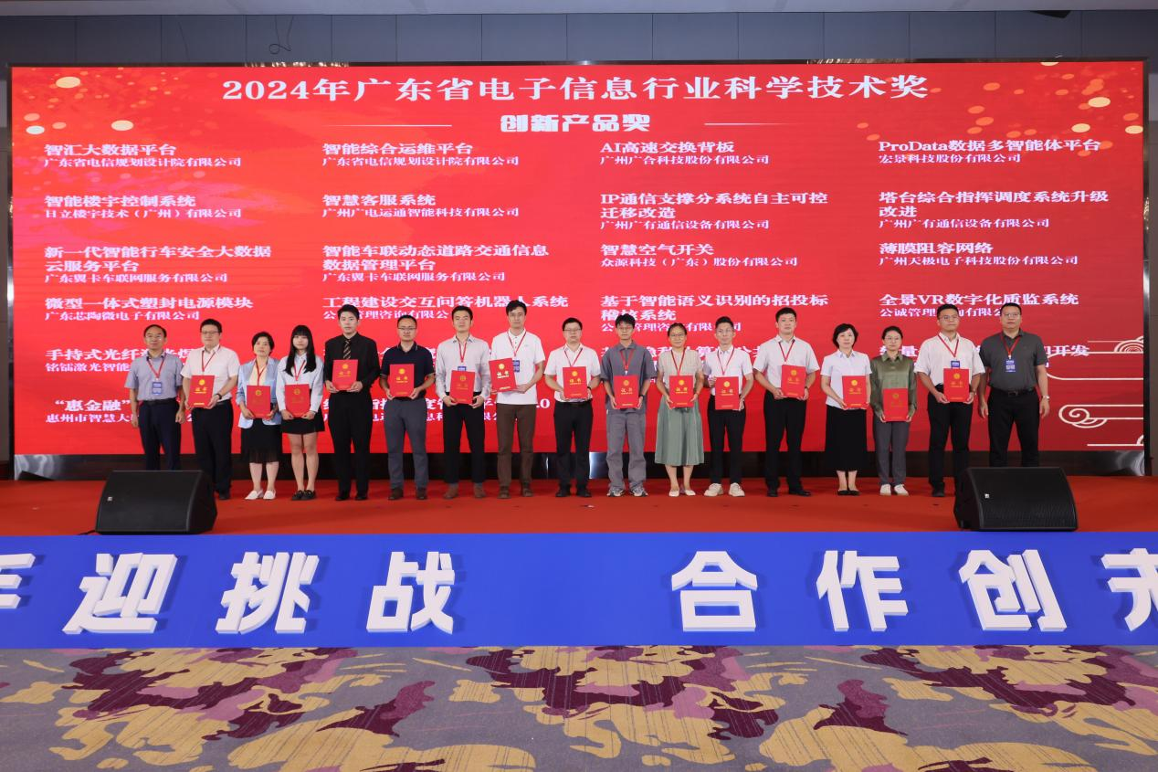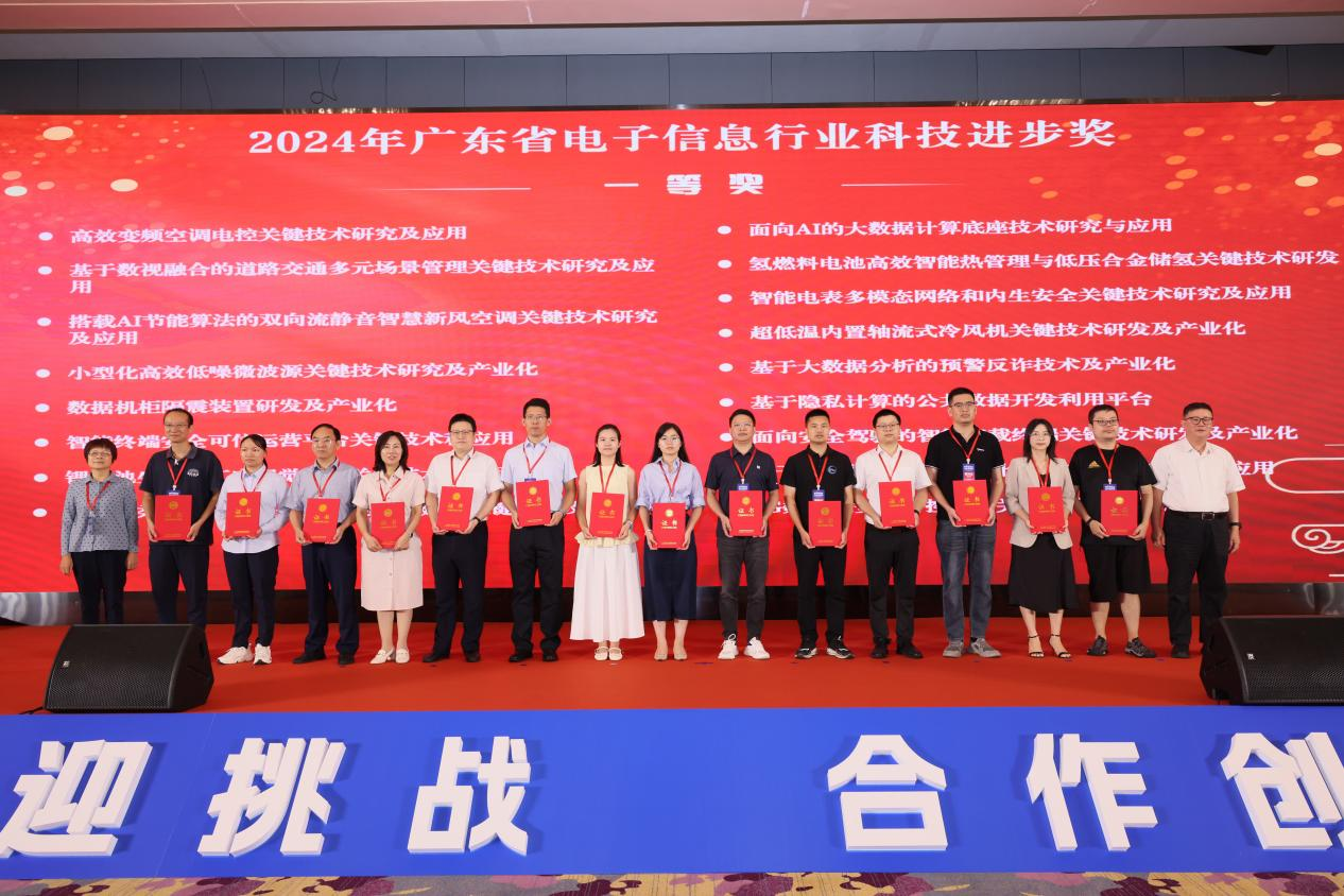 在表彰环节,大会隆重颁发了2024年广东省电子信息行业科学技术奖,其中包含“科技进步奖”“突出贡献奖”“青年科技创新奖”“ 创新企业奖”“创新产品奖”“标准奖”,表彰在广东省电子信息行业科技领域中做出突出贡献的个人、组织,激励广大电子信息行业工作者积极创新,为电子信息行业发展贡献力量,提高广东省电子信息行业的综合实力和水平。