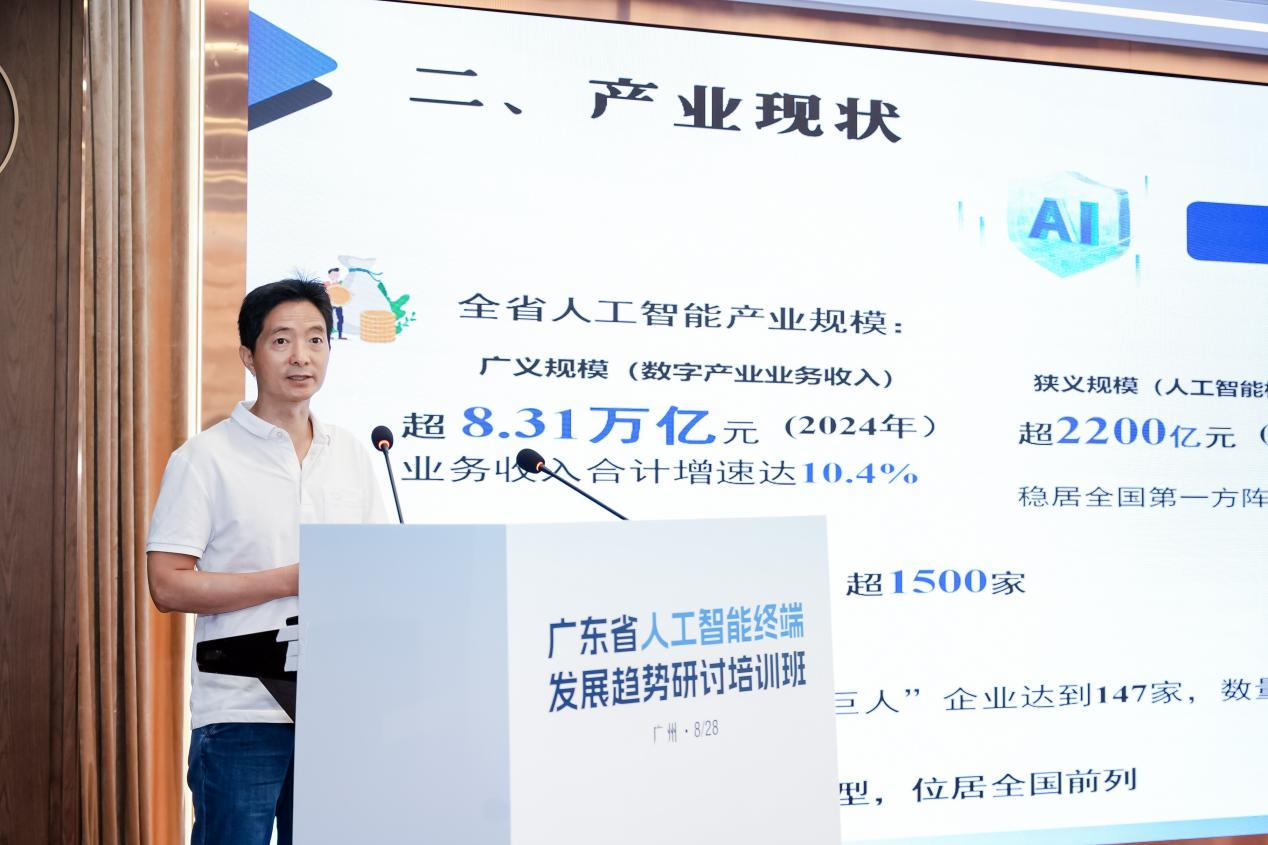为深入贯彻习近平总书记关于人工智能与机器人领域系列重要讲话精神,认真落实省委“1310”具体部署和全省高质量发展大会要求,加快推动我省人工智能终端产业高质量发展,8月28日,由广东省工业和信息化厅主办、中国计算机行业协会人工智能产业工作委员会人工智能终端工作组等单位大力支持的“广东省人工智能终端发展趋势研讨培训”在广州成功举办。广东省工业和信息化厅二级巡视员万淑萍、工业和信息化部电子信息司消费电子处处长周大铭、全省各地市工业和信息化局相关负责人、人工智能终端企业代表等200余人出席会议。