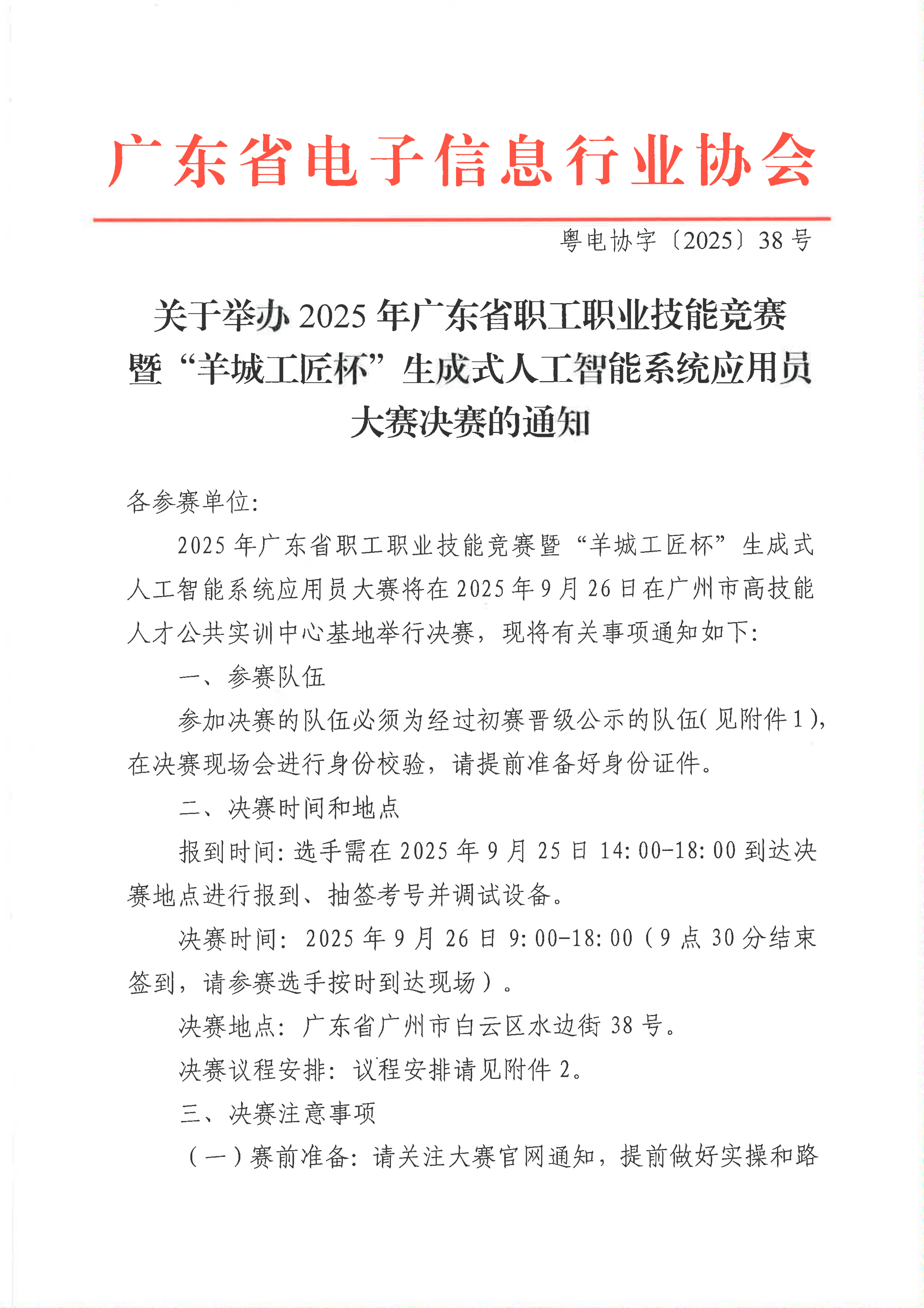 关于举办2025年广东省职工职业技能竞赛 暨“羊城工匠杯”生成式人工智能系统应用员大赛决赛的通知