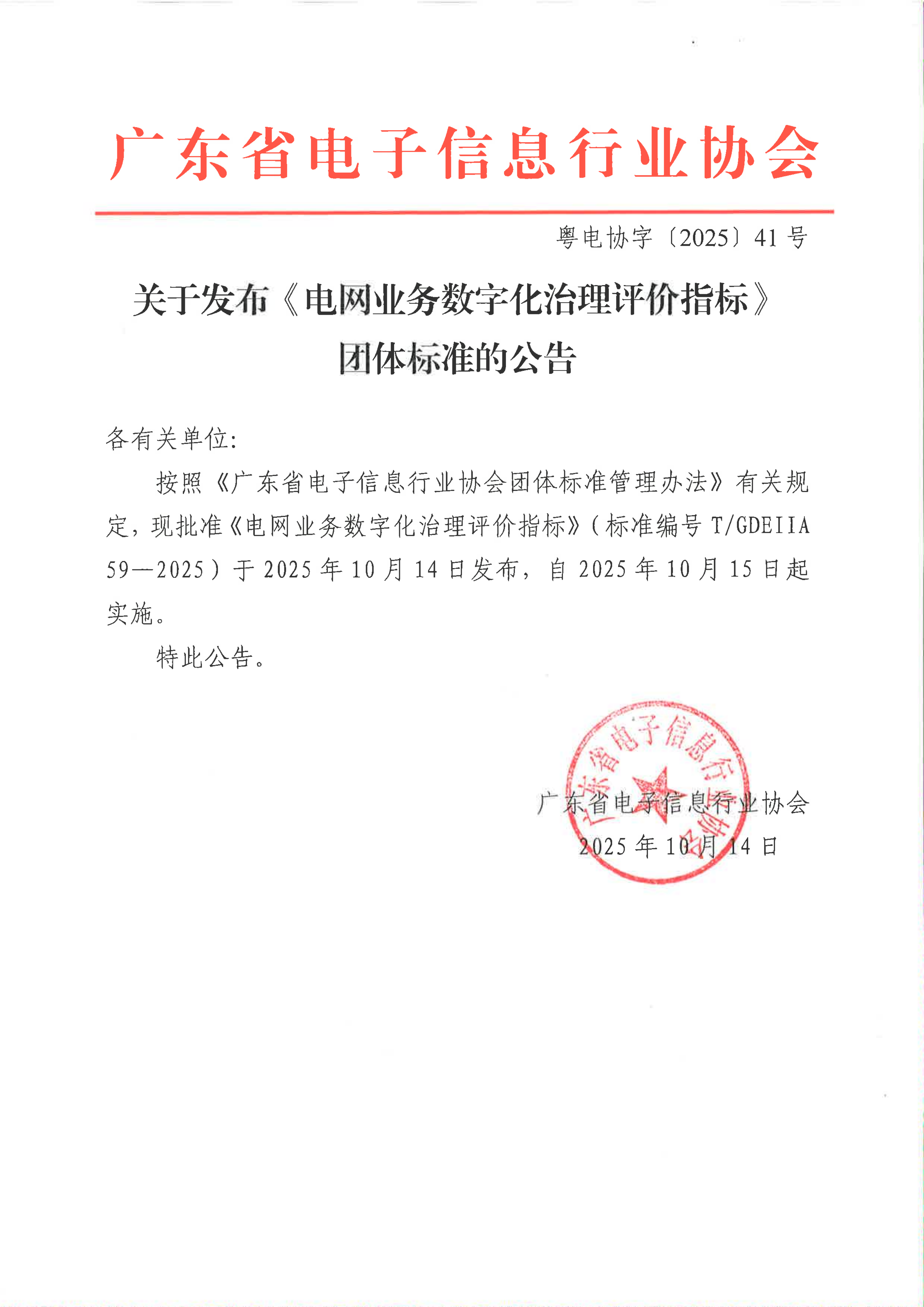 关于发布《电网业务数字化治理评价指标》团体标准的公告